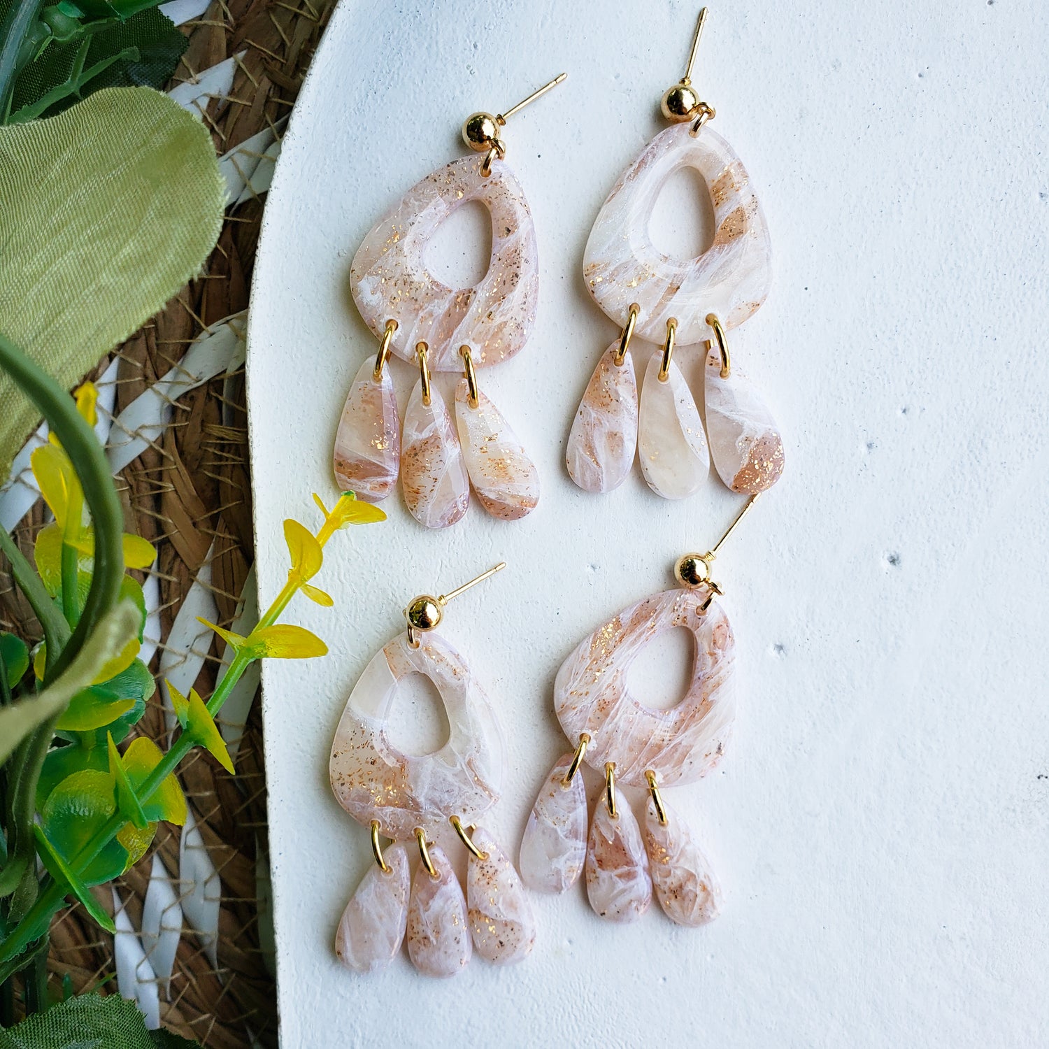 These organic boho dangles are the perfect finish to any outfit. They are a gorgeous statement piece sure to draw attention. Ball stud posts are hypo-allergenic.